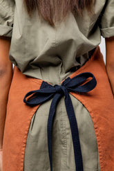 - Sight | Two blueCut aprons: grey lucca & crimson lucca linen aprons featuring antique brass hardware, handcrafted in California