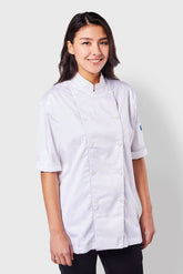Our Rivington chef coat - fine twill is fitted and cut to slim you while still feeling comfortable. This white Rivington is constructed from 6 oz. stretch cotton fine twill and features hand sewn antique brass buttons from Italy. Handcrafted in the U.S.A.