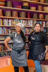 In many Spanish-speaking Latinx cultures, La Jefa is a term meaning “a woman boss” used to address a matriarchal figure, whether a mother, community leader, or woman business owner. For Mother’s Day, BlueCut teamed up with La Cocina to create an apron that honors women who are the “boss” of their professional and home kitchens, with 20% of proceeds from the sale of each apron benefiting the non-profit organization’s food hall.