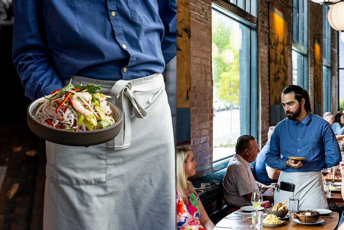 Chef Ori Maneshe from Bestia, Bavel & Saffy'sBlueCut produces professional grade aprons that are comfortable, look great, fit well, while also withstanding the heat of the kitchen. Their quality allows them to last a long time without looking worn down. They are heavy duty aprons that break in like a nice pair of jeans.